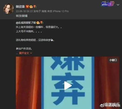 你知道吗?最近娱乐圈可是炸开了锅,因为女神钟欣潼(阿娇)竟然转发了一段视频,而这个视频的爆料内容,简直让人大吃一惊!今天,就让我带你一起来揭秘这段神秘视频背后的故事吧!